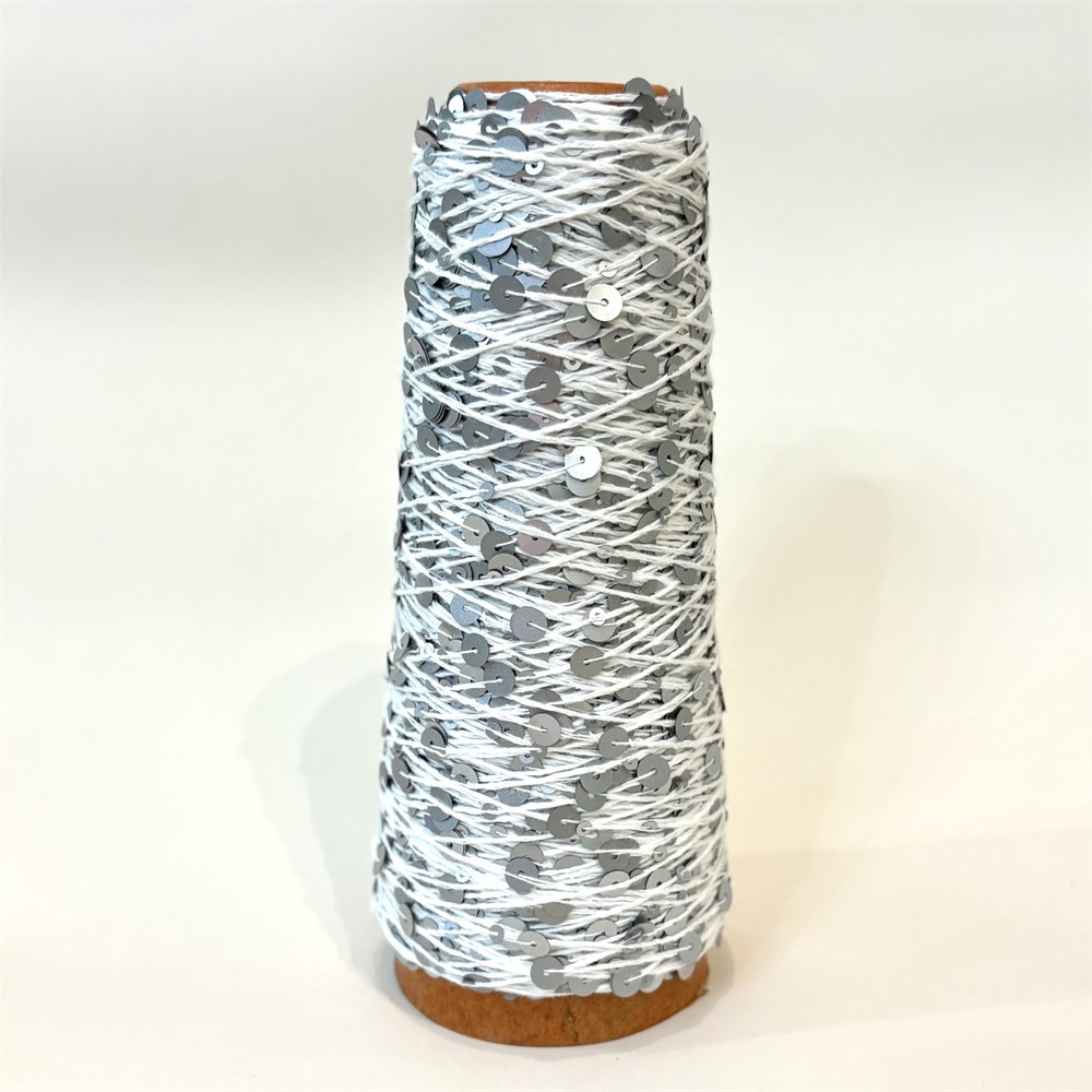 Пайетки на хлопке | Белый с матовыми серебристыми пайетками, 50 гр.