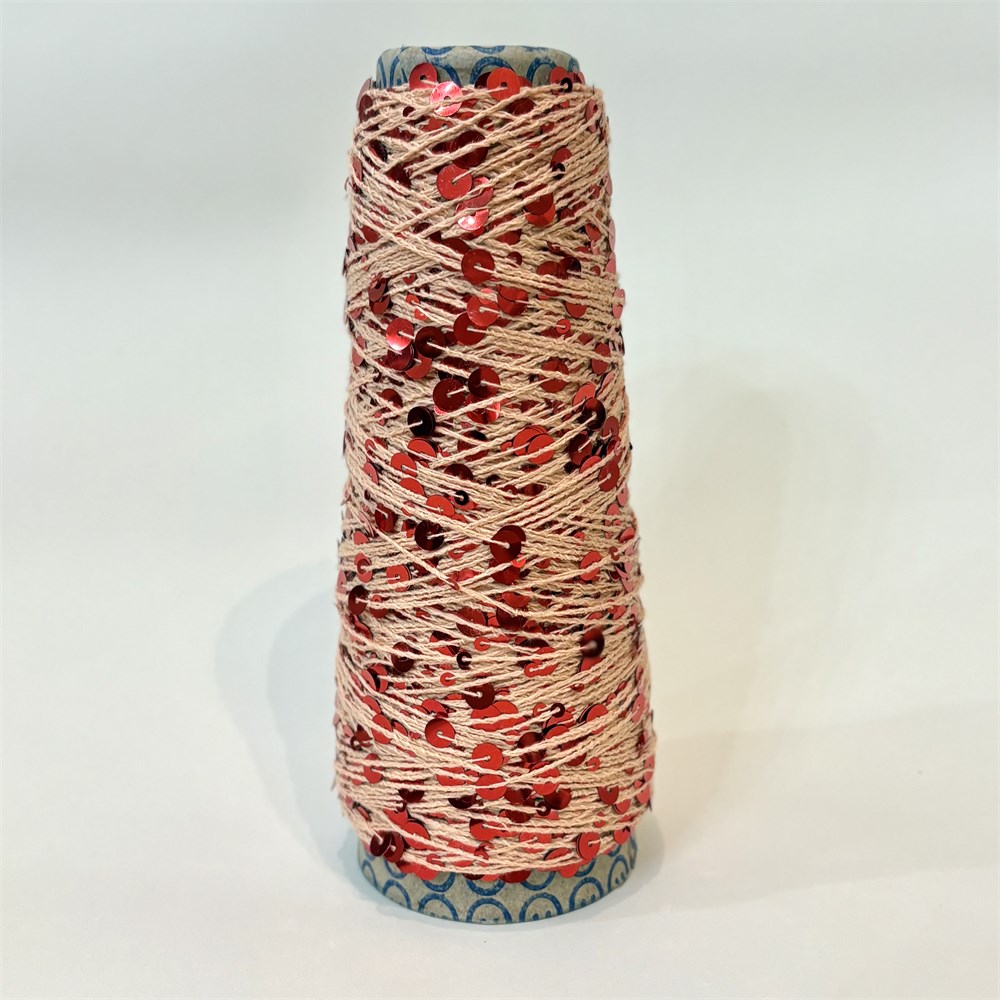 Пайетки на хлопке | Персиковый с красными пайетками, 50 гр.